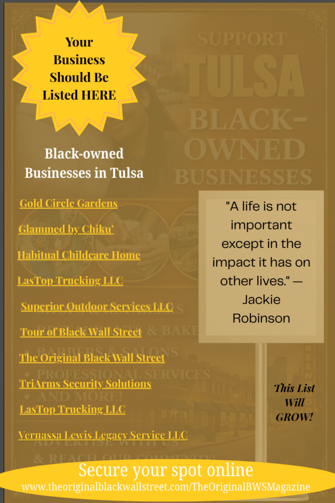 Get your business seen and supported with a Business Listing in The Original Black Wall Street Magazine*—a curated directory connecting readers to Black-owned businesses and community resources.